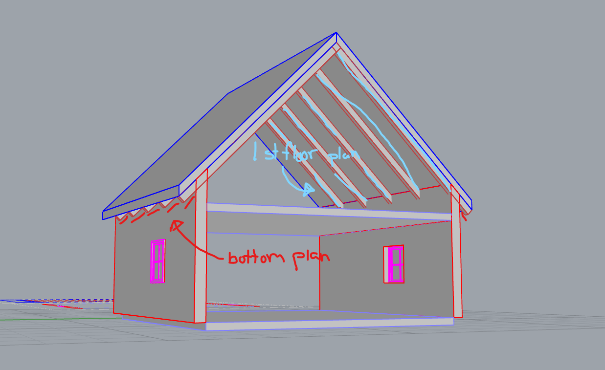But shouldnt the slab between bottom floor and 1st floor ‘block out’ the parts of the trusses that it ‘shades’ so that it appear like this (drawn manually):