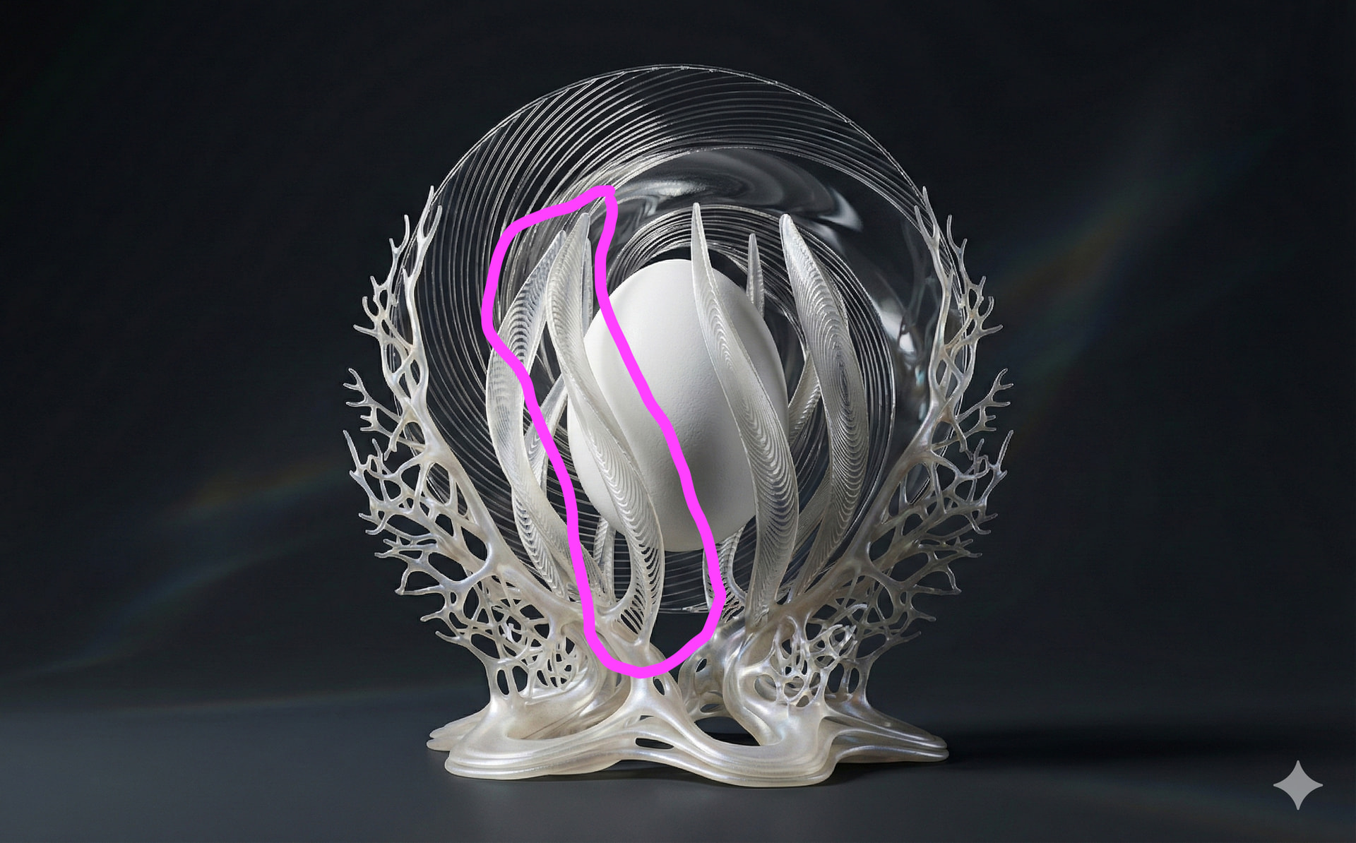 I also generated an image in Gemini, and I love how biomorphic it looks. I’d like to get as close as possible to that feeling in Rhino.