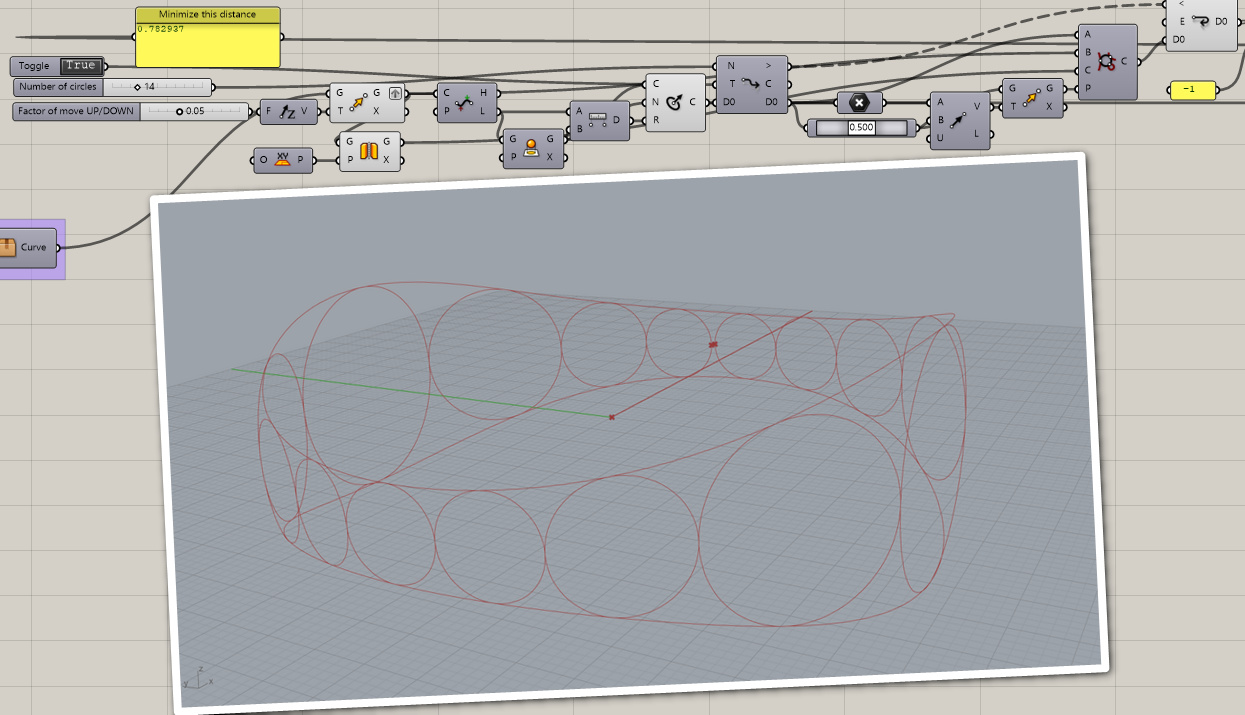 Then you move the up or down the curve in order to minimize the distance betwen the first ans last circle.