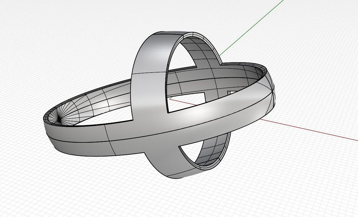 Unfortunately, it’s a bit difficult to draw, but I’ll try. Both rings should be bent so that they form a smooth common surface.