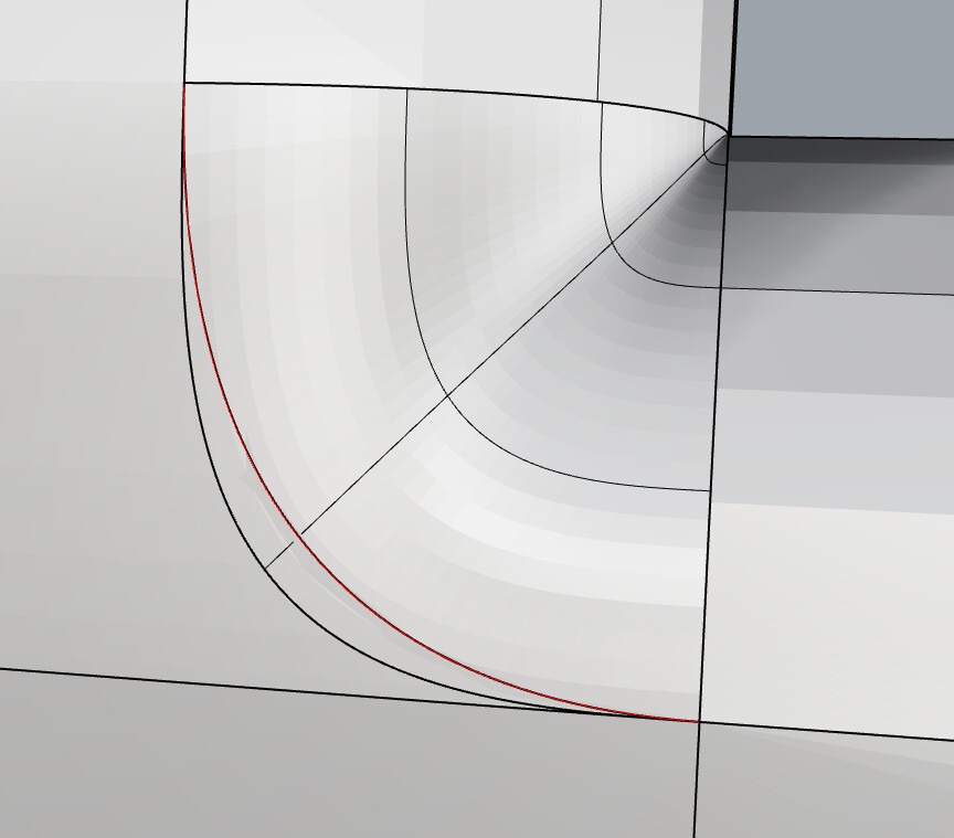 Yes, I can maybe live with that (until I export solid to manufacturer) but I think it is not high quality surface. Rhino is awesome software and I really love it but it should not be so difficult to make good fillets… It’s not all about this exact fillet (because there is hundreds of more same kind of), maybe I just want to hear if there is already a tool, or if it is impossible to develope easy high quality fillets…