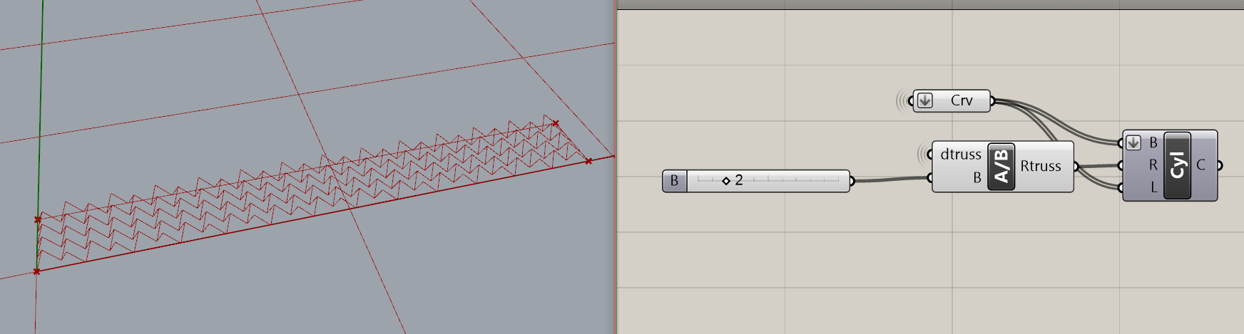 I have this grid and I would like create cylinders with axis coincident with lines and I would to assign to each element a different radius, according to the distance from the y-axis(shorten direction).