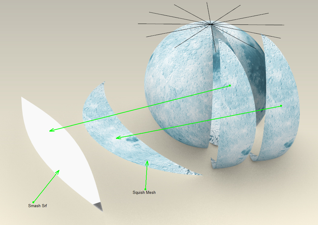 This is one way, but it does not give the desired result. The problem is this. How to force Squish to unfold a surface in the correct form as It does unroll or Smash commands with surfaces?