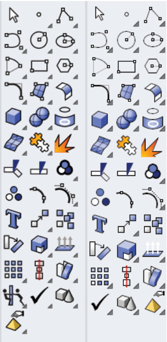 This version is using new resizable toolbar icons that are presumably being scaled down from larger assets. Compared to Rhino 7, on the same PC, at smaller sizes, they are fuzzier. I don’t know what the native resolution of the images are, but the new rendering is much harder on the eyes than v7. I’ve tried several different settings for the toolbar icon sizes, but they are all pretty bad like this.