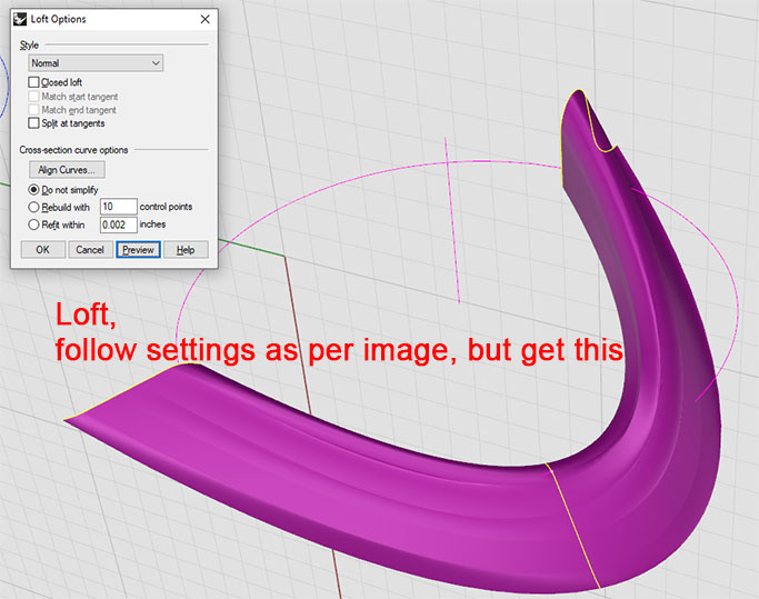 If you try the “Loft” tool you will realize that it produces far smoother result, but using the current curves will force you to rebuild the output, thus gain some unwanted deviation. Just don’t use 0,003 , because for some reason that will cause some BUG with the geometry… ![]()