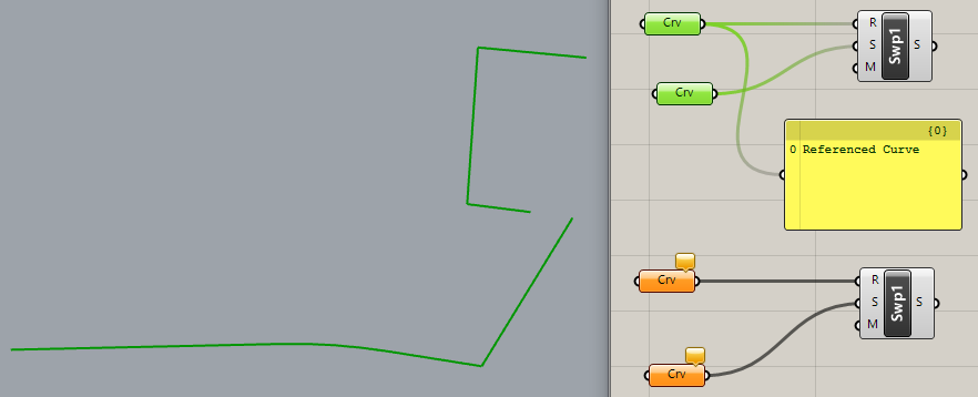 Hello, I seem to have encountered a wild behavior for Sweep 1 command in the main interface . The image shows two sweeps made with the same parameters (Roadlike). Also I can’t achieve what I want which is a clean mitered sweep following the rail. I don’t know if my rail is just not applicable to sweep due to it’s shape, because even when using Sweep 1 in Grasshopper, instead of forming one clean sweep it creates 2 sweeps mimicking the image on the right.