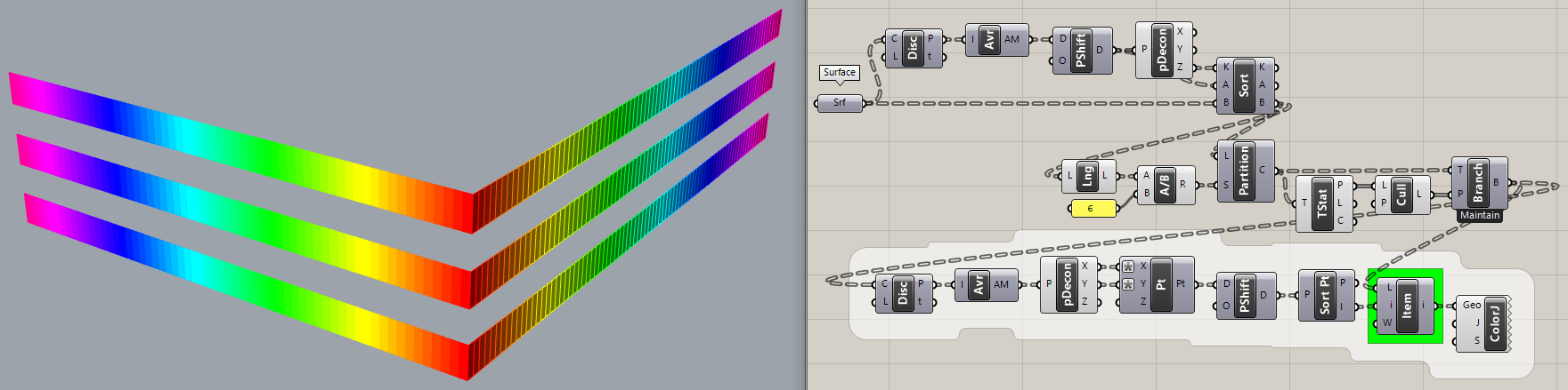 Here is a “solution” that sorts only by Z values, partitions into rows and culls alternate rows. Simple! But as you can see by the Colorful Jitter pattern, the surfaces in each row are not sorted.
