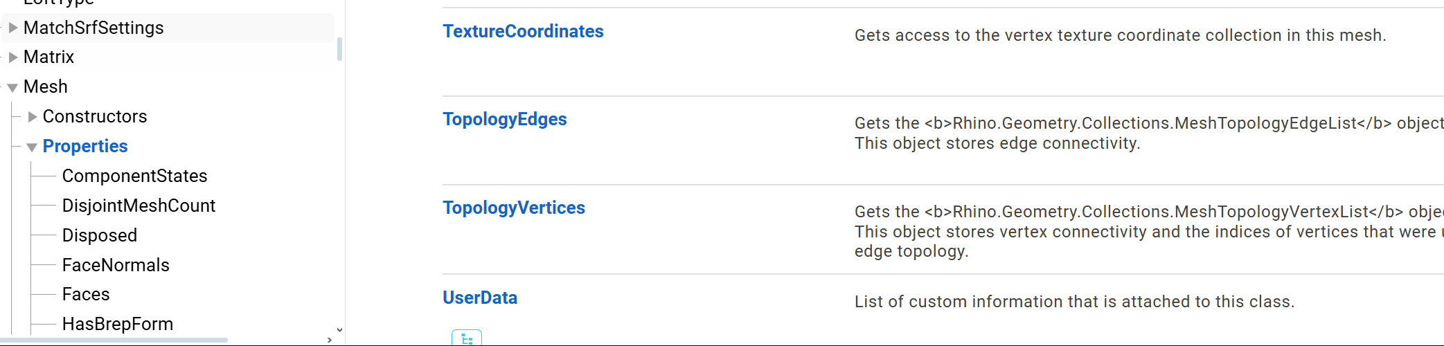 https://developer.rhino3d.com/api/rhinocommon/rhino.geometry.mesh#properties
