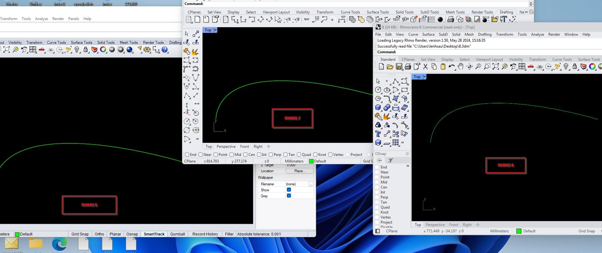 Please try changing Rhino Background to black and you will see the difference in wire display of Rhino Versions